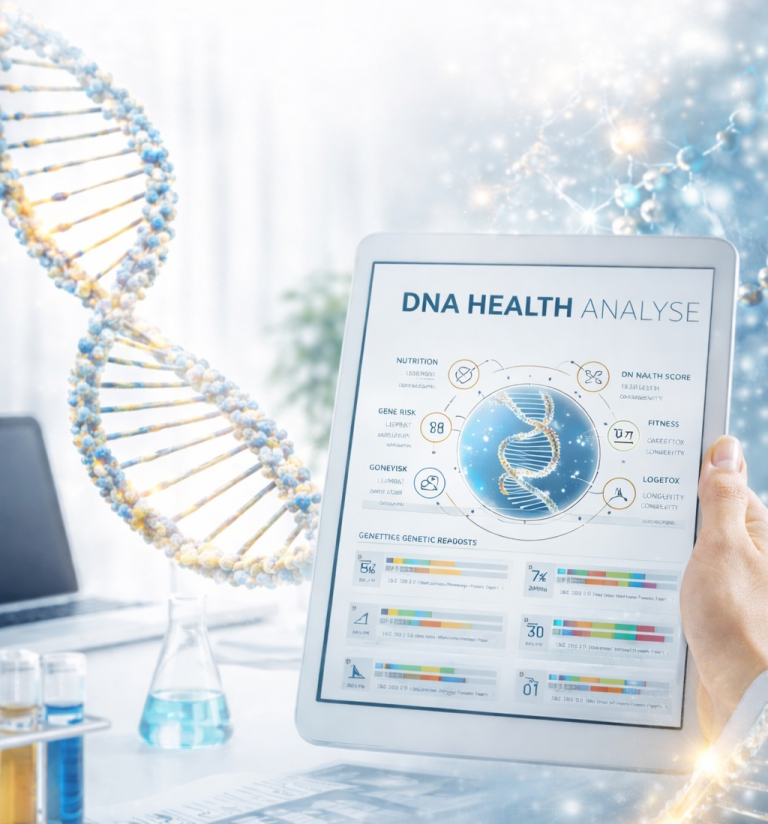 Beratung auf Basis moderner DNA‑Analysen in Zusammenarbeit mit Nordic Laboratories. Die Ergebnisse helfen, genetische Zusammenhänge besser zu verstehen und daraus persönliche Impulse für Lebensstil und Ernährung abzuleiten.